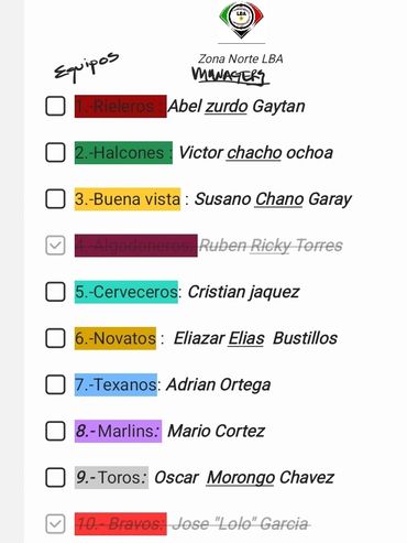 cada juego sera En diferentes Locacion y campos de beisbol, juegos de Noche y de dia seran agendados con tiempo, la organizacion de Equipos es Eminente, Apuntando Notas venta de "Chuchulukos', liquidos Refrescantes, Fritangas y Buen ambiente, musica